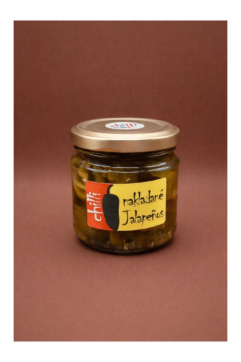Chilli papričky Jalapeños 90 %, voda, ocet, třtinový cukr, sůl, hořčičné semínko, pepř černý, koriandr, nové koření, hřebíček.