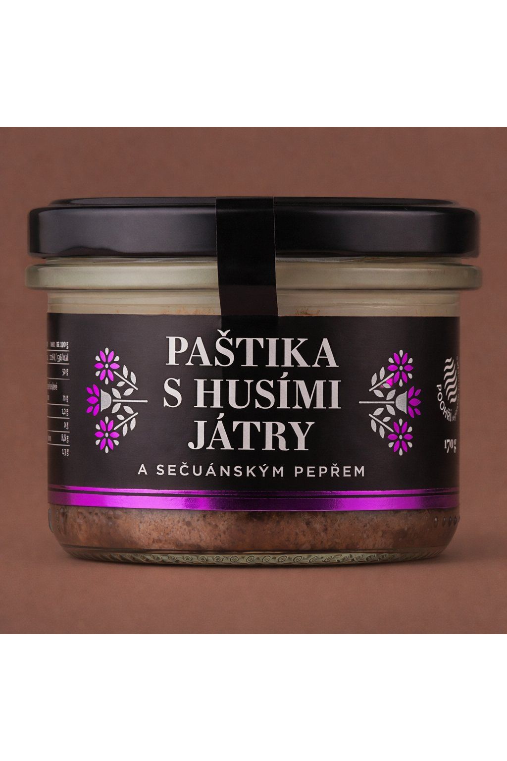 Tahle paštika je postavená na delikátní chuti husích jater, která působí jemně, ale zároveň noblesně plně. Vůně je čistě masová s elegantním kořenitým nádechem, který zvedá celkový dojem bez zbytečné těžkosti. Konzistence je hladká, krémová a perfektně roztíratelná, takže se skvěle hodí na bagetu i kváskový chléb. Sečuánský pepř přidává lehce citrusově-kořenitý akcent, díky kterému chuť nepůsobí ploše. Kapka piva dotáhne chuť do kulata a udělá z ní vyloženě sváteční záležitost.